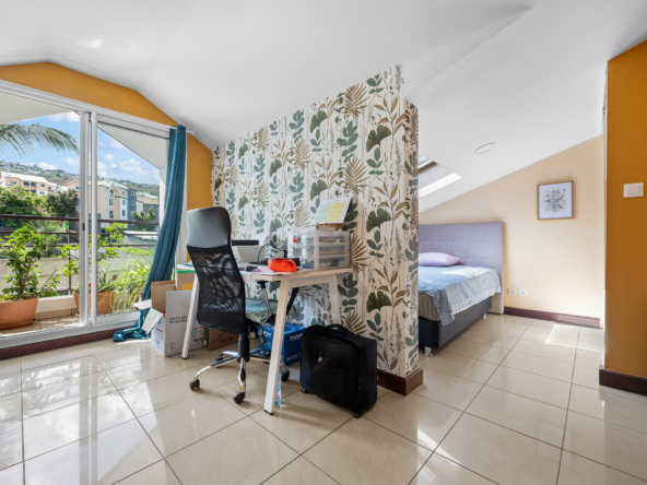 AMICASA IMMOBILIER vous présente ce superbe T4 en duplex, entièrement rénové, situé au dernier étage d’une résidence sécurisée livrée en 2007, dans le secteur recherché de Sainte-Thérèse, à La Possession. Vous êtes à moins de 10 minutes de la 4 voies et à proximité immédiate des commodités.