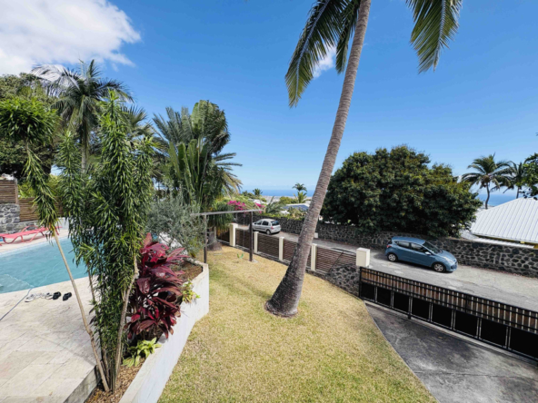 L’agence AMICASA IMMOBILIER vous propose à la Possession, dans le quartier de Sainte Thérèse, cette maison de 129 m2 au sol avec une vue mer et piscine.