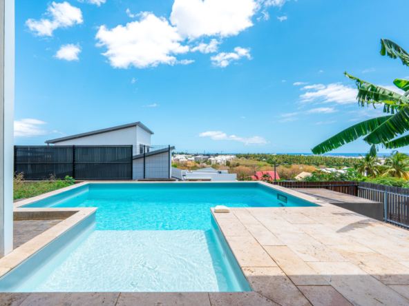 L’agence AMICASA IMMOBILIER vous propose à la Possession, dans le quartier de Saint Laurent, cette villa moderne récente de 147 m2 avec une vue mer et une piscine et un garage.