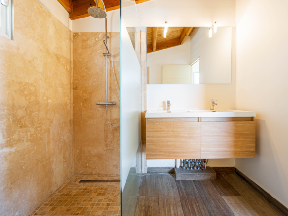 La maison a été achevée en 2019 et sous garantie décénale vous y trouverez principalement à l’intérieur :