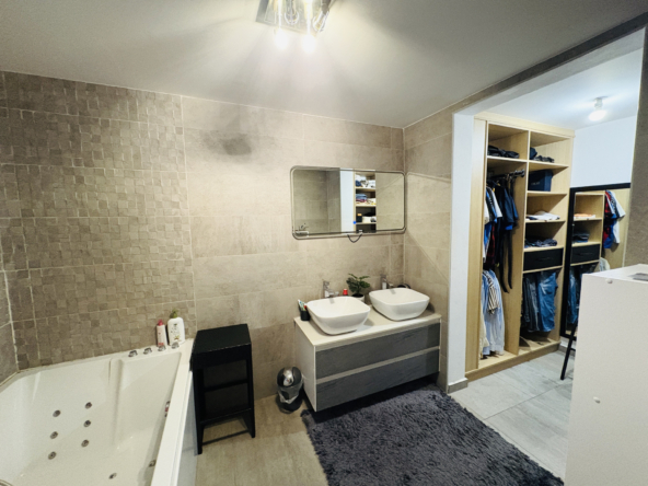 – Au R-1 un dégagement desservant une salle d’eau individuelle, 3 chambres dont une en suite parentale avec dressing et salle de bain et un second WC.