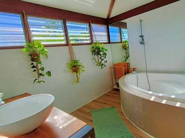 Le terrain de 1 090 m2 végétalisé et arboré de nombreux arbres fruitiers (manguiers, litchis, goyaviers, citronnier, bananiers, agrumes) permet d’etre niché dans un écrin de verdure sans vis à vis.