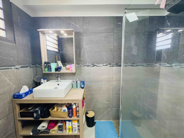 – Une salle de bain avec WC