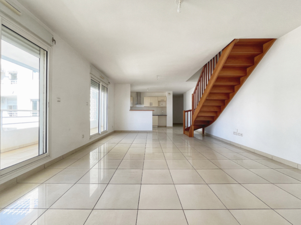 Découvrez ce magnifique duplex T4 de 100 m2 habitables avec varangue de 17 m2, niché au dernier étage d’une résidence sécurisée et prisée, à deux pas du centre d’affaires Cadjee.
