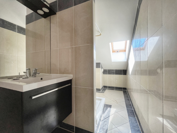 – 1 salle de bain avec WC au RDC et une salle d’eau à l’étage + un WC