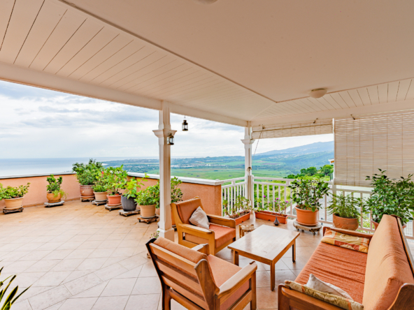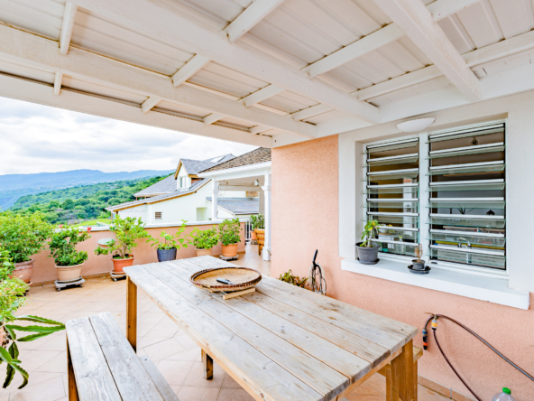 – Prolongement sur une terrasse/varangue de 57 m2 avec vue mer et montagne imprenable