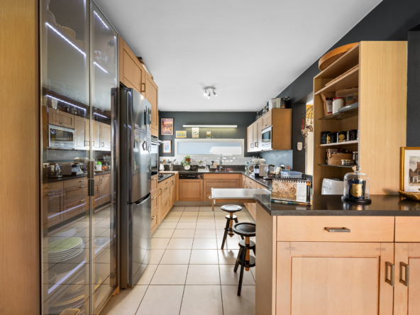 – Cuisine contemporaine aménagée sur mesure, avec nombreux rangements.